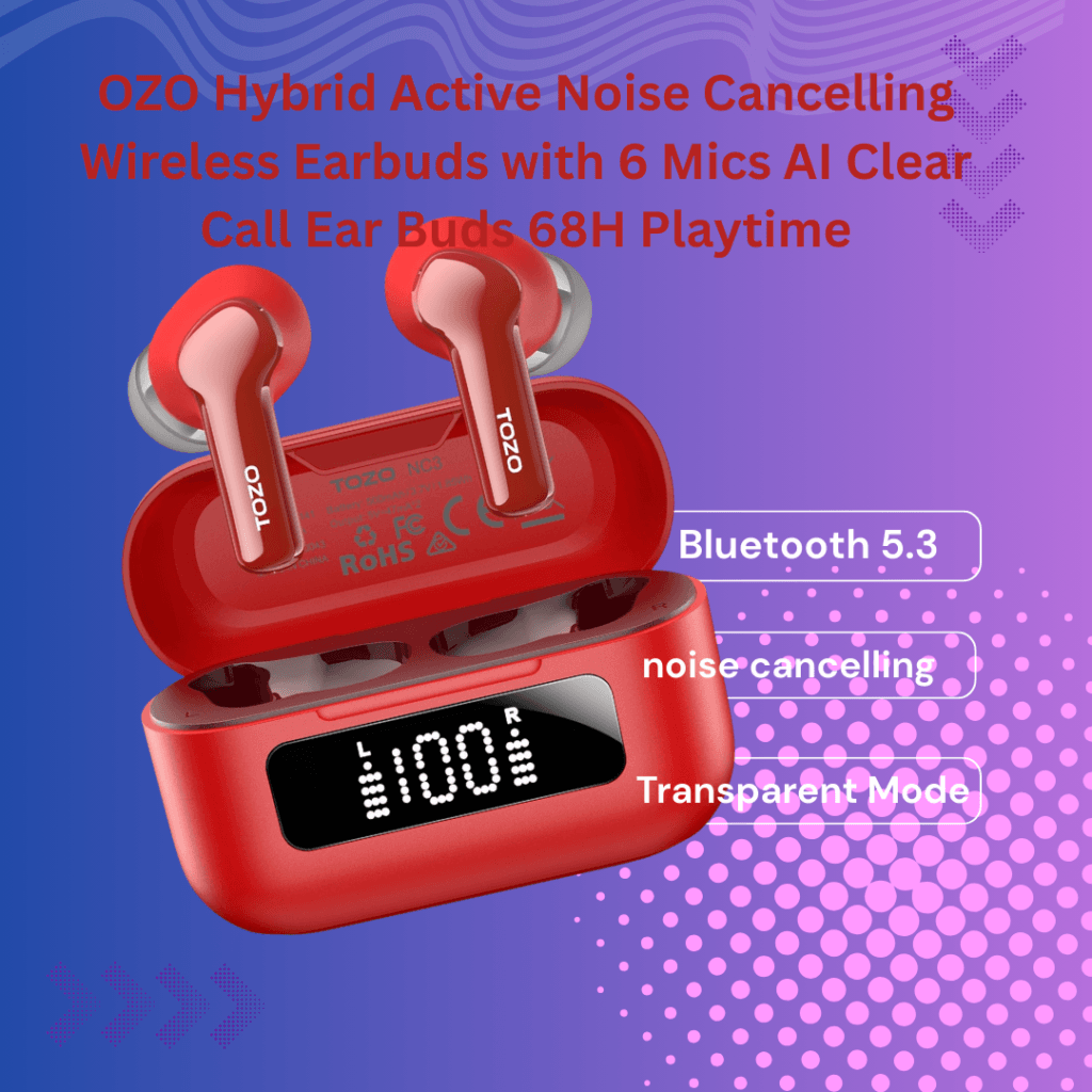 TOZO NC3 earbuds feature hybrid ANC with up to 45dB noise reduction, blocking out subway, street, and everyday noise for an immersive listening experience.