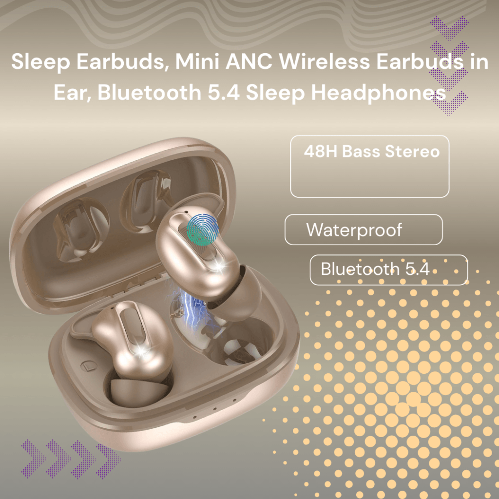 sunvito Mini Sleep Earbuds Invisible Wireless Headphones Micro Sleep Headphones with Bluetooth 5.4/LED Power Display for Small Ears Side Sleepers, Comfort for Sleep, Travel, Work(Beige)