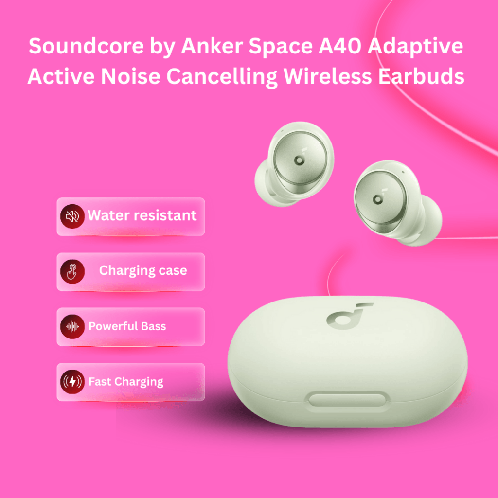 Soundcore Space A40 Earbuds reduce noise by up to 98% with adaptive noise cancelling that automatically adjusts to your surroundings. Enjoy up to 50 hours of playtime with fast charging—10 minutes gives 4 hours. Double-layer diaphragm drivers deliver rich bass, clear mids, and bright treble, with LDAC Hi-Res audio support. Ultra-lightweight and ergonomic, they’re designed for all-day comfort wherever you listen.