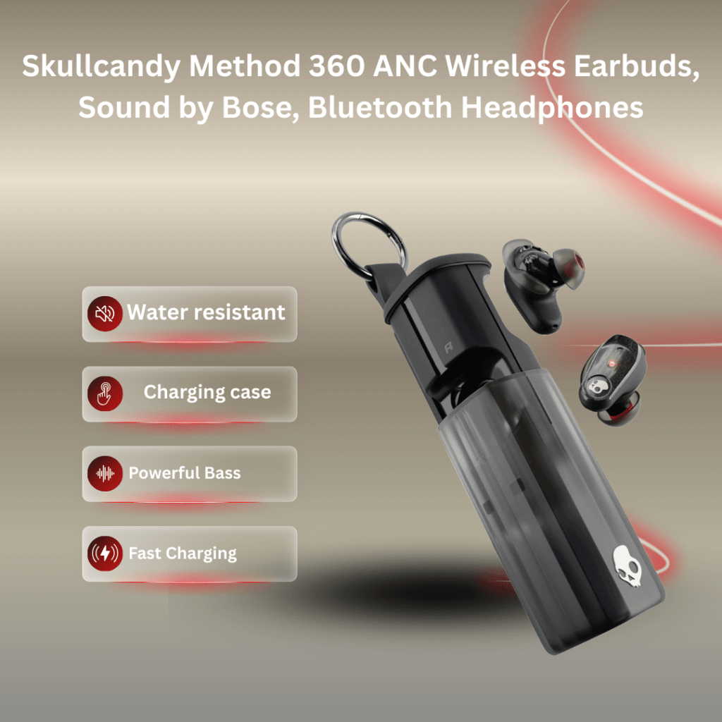 Skullcandy Earbuds with Sound by Bose powerful range, plus superior Active Noise Cancelling. The clip-anywhere case adds bold style and easy portability. Enjoy a secure IPX4 water-resistant fit, up to 40 hours of battery life, and smart features like multipoint pairing, Google Fast Pair, and solo bud use. Customize EQ, controls, and ANC modes in the Skull-iQ app. Backed by a 1-year limited warranty for peace of mind.